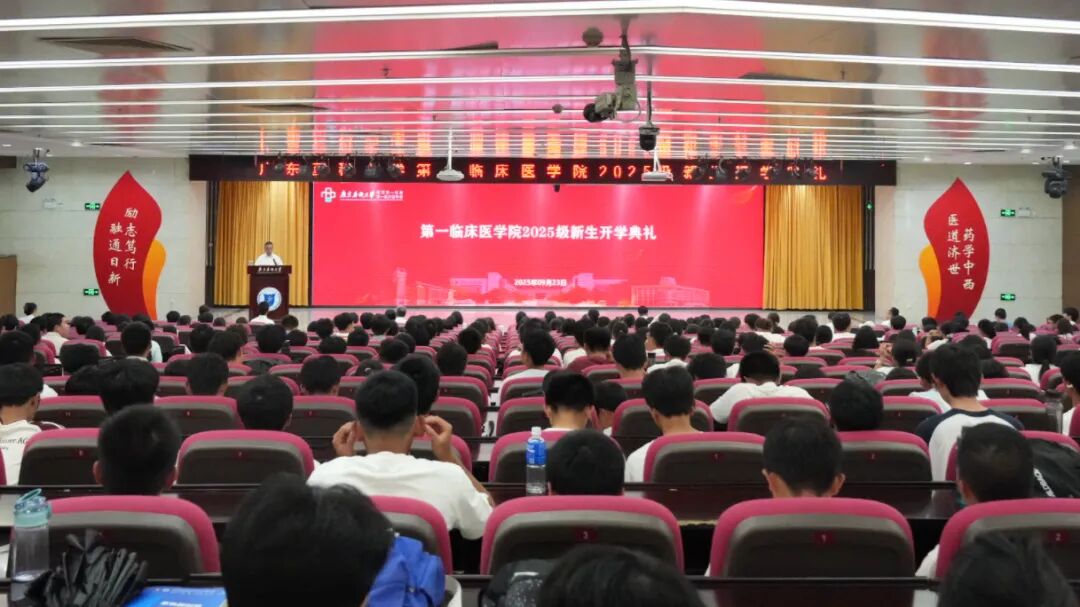 9月23日下午,广东药科大学第一临床医学院(附属第一医院)在大学城校园国际会议中心举行2025级新生开学典礼。学院领导班子成员、各系主任、相关职能科室负责人、学生辅导员等出席开学典礼。典礼由学院党委副书记庄文斌主持。