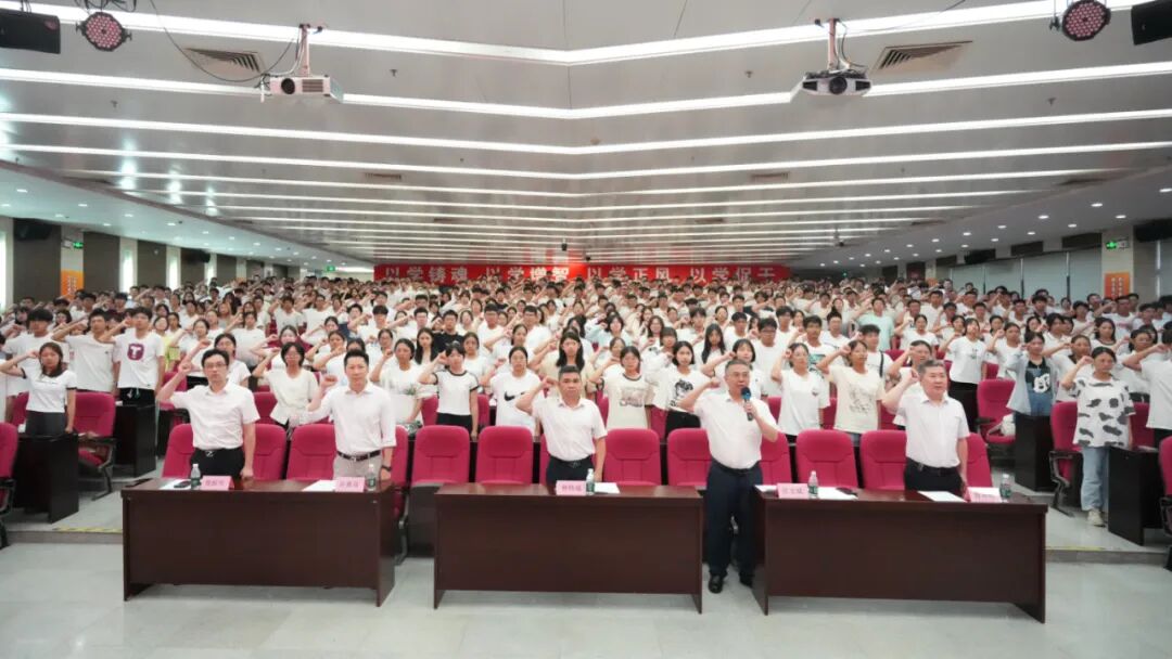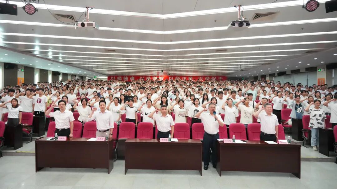 在庄文斌带领下,2025级新生进行了庄严的医学生宣誓仪式。“我志愿献身医学,热爱祖国,忠于人民,恪守医德......”,全体新生铿锵有力的誓言回荡在会场,表达了他们献身医学、服务人类的崇高志向。