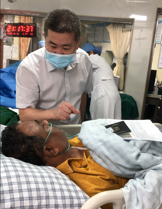最后,PRASHANT先生开心地与心血管二科的医护人员合影。“我将把照片带回印度与我的家人及朋友分享,让他们知道我的救命恩人!也期待中国与印度多交流,我每年都会回来,愿中印友谊长存!”