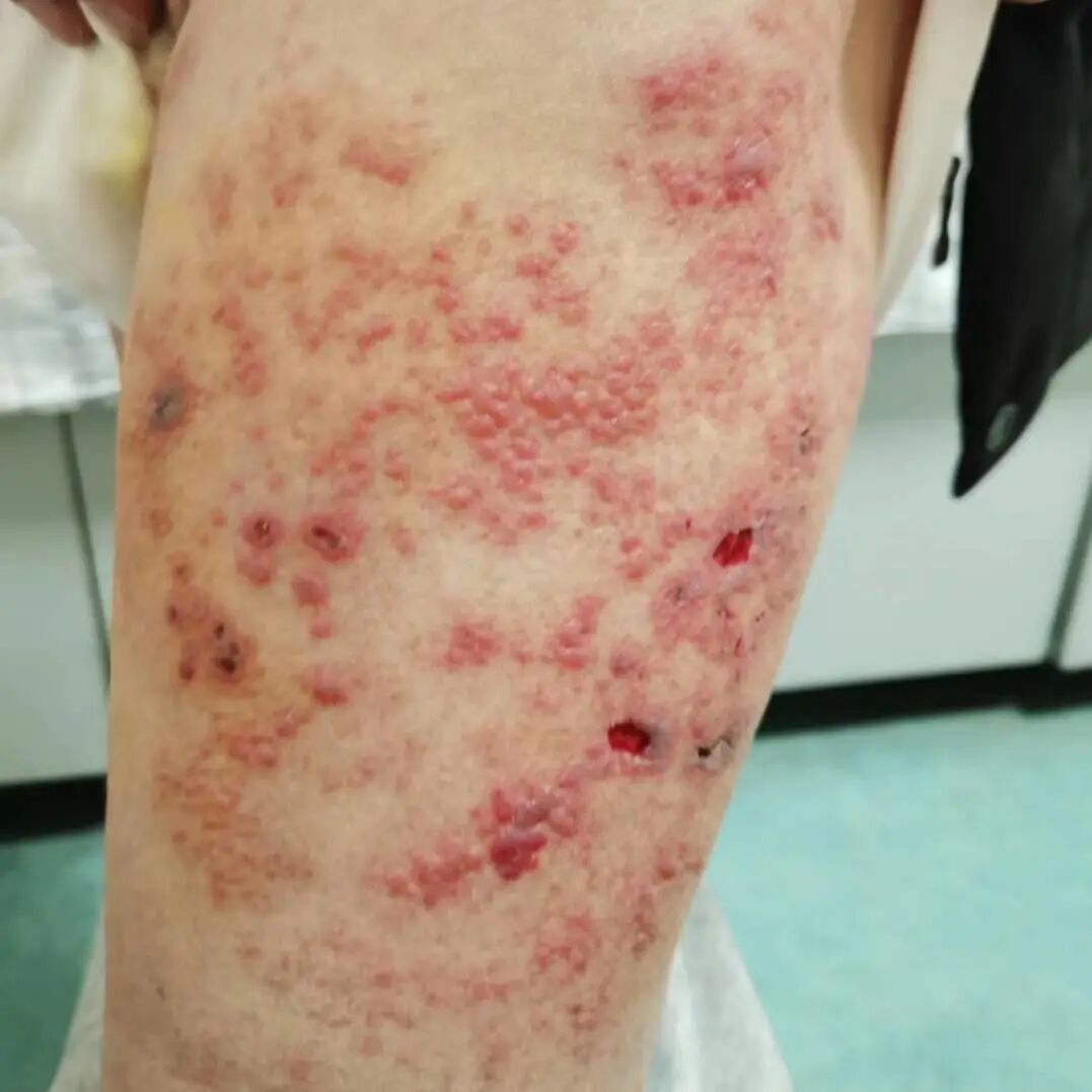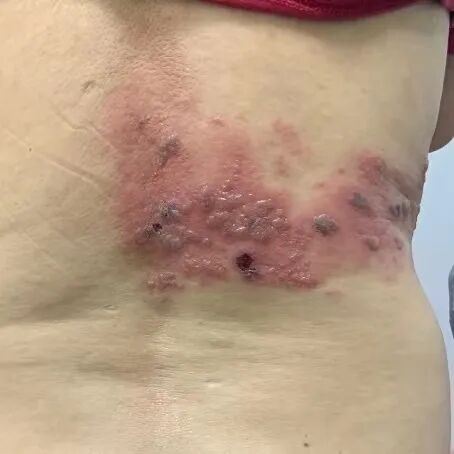 2.可有脱发、永久性瘢痕、带状疱疹后遗神经痛;须防止疤痕疙瘩形成以免影响外观或机体功能;若发生后遗神经痛,会有“机关”触痛点,衣服要宽松避免触及触痛点。