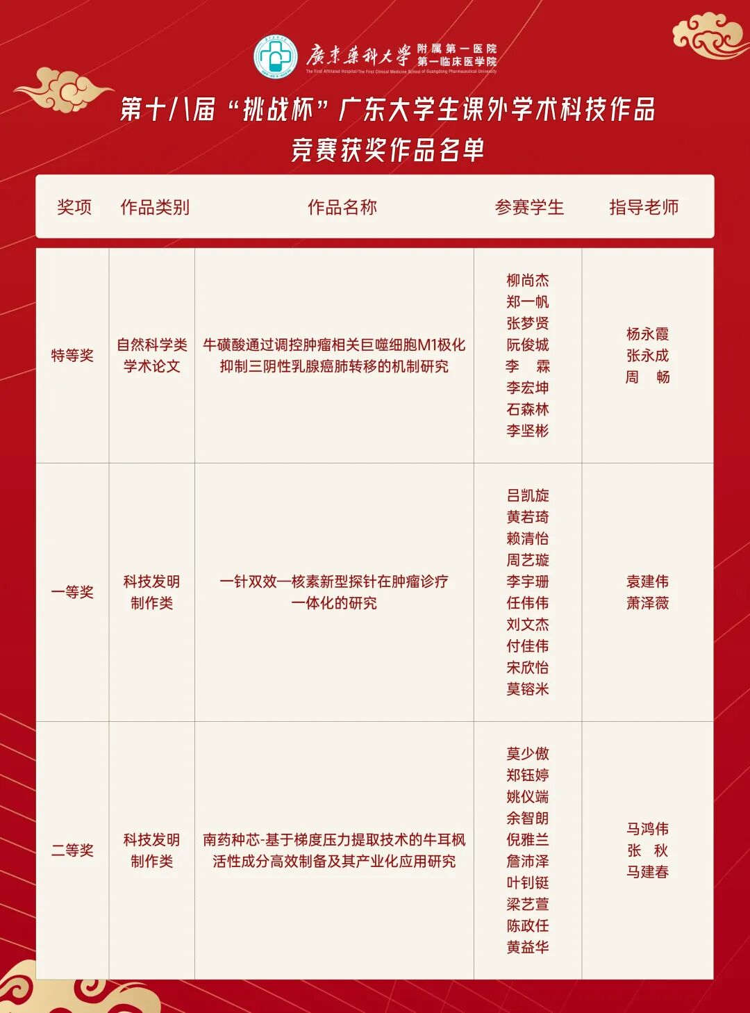 5月17日至19日,第十八届“挑战杯”广东省大学生课外学术科技作品竞赛终审决赛在肇庆学院圆满落幕。广东药科大学第一临床医学院学子在激烈竞争中脱颖而出,斩获特等奖1项、一等奖1项、二等奖1项,创下历史佳绩。