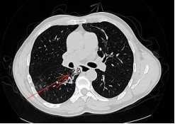 该研究中的患者彭先生因“发现食管气管瘘20余天”到我院治疗。彭先生两年出现反复咳嗽、咳黄脓痰,当地医院就诊后诊断为“肺脓肿”,予抗感染对症治疗后,黄脓痰转向白痰,20余天前彭先生出现咳血,遂至外院查胸部CT,结果提示:食管-右肺下叶背段纵隔旁支气管瘘。